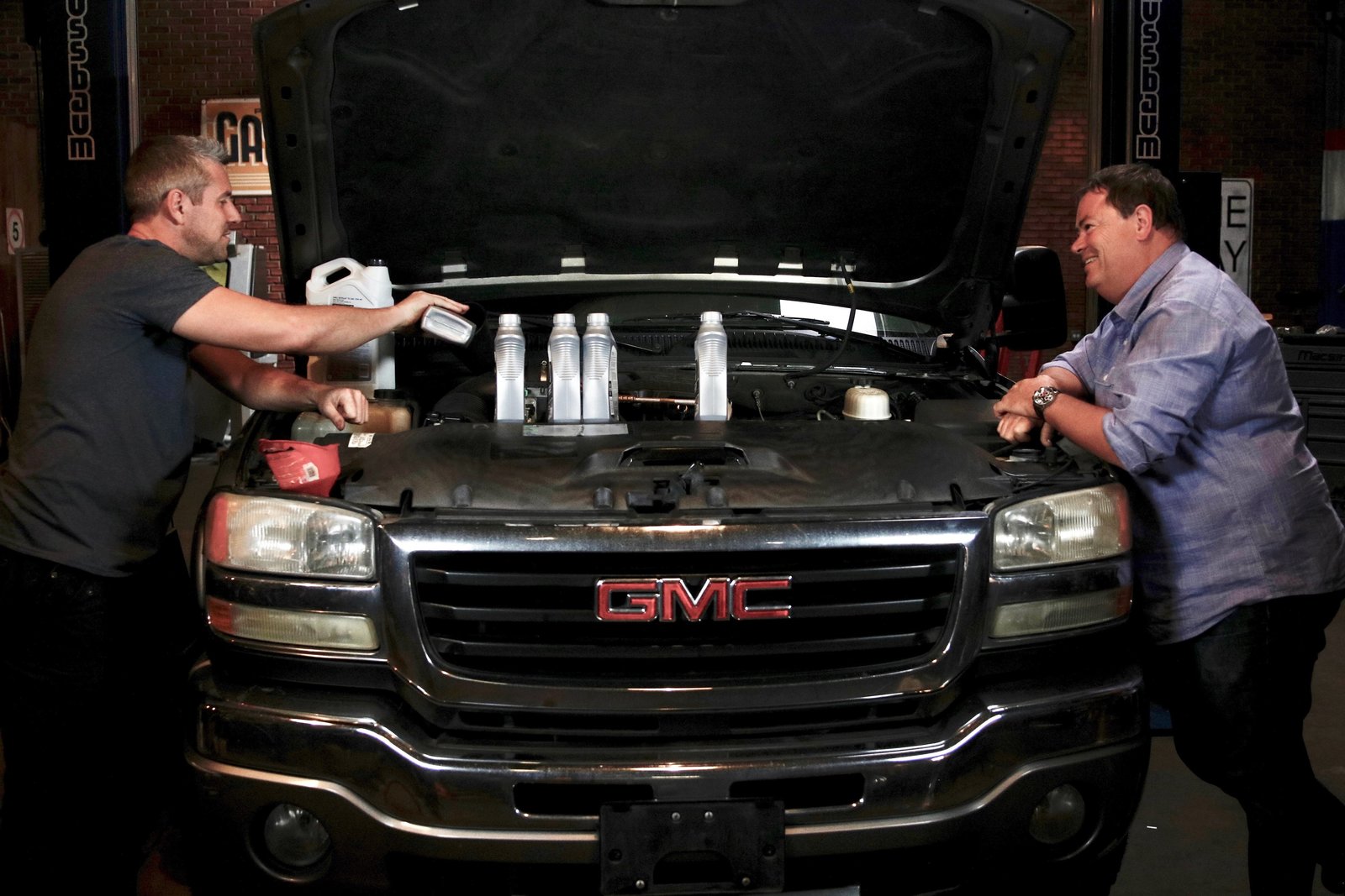 International Harvester ScoutAnt Anstead (l.) and Mike Brewer Looking over Scout Engine.Bild: © DMAX