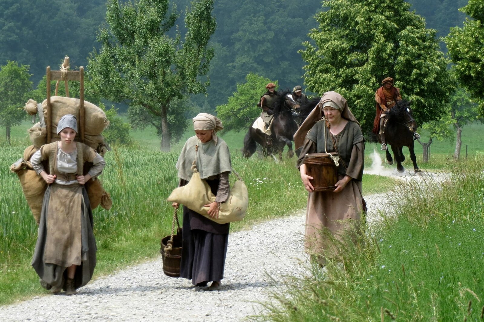 Wie wir im Mittelalter lebtenBäuerinnen auf dem Weg zum Markt im 15. Jahrhundert .Bild: © SWR/Jens Boeck