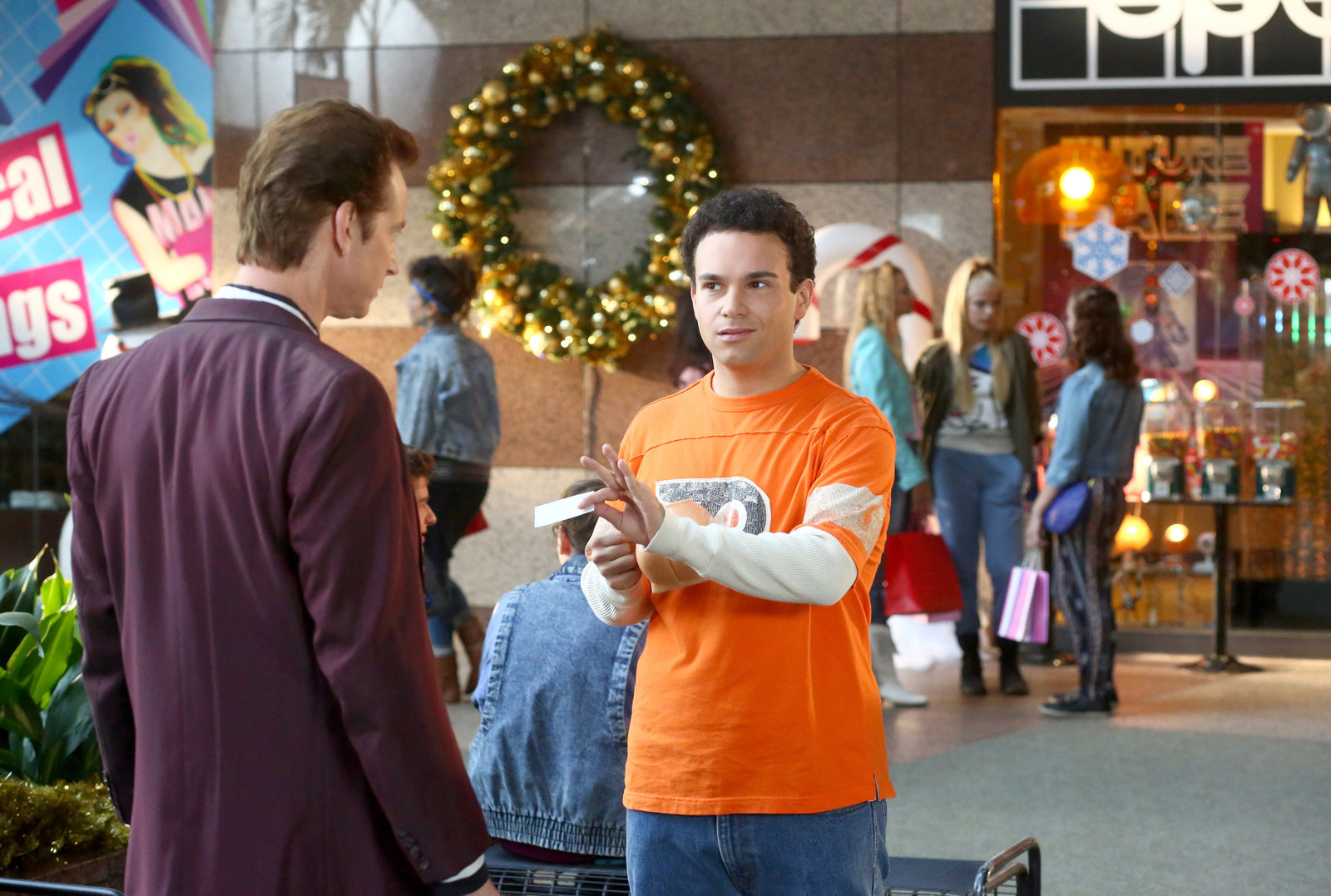 Jeder hat das Zeug zum Modeln"Die Goldbergs", "Jeder hat das Zeug zum Modeln." Barry fühlt sich wie ein Star: Er wird von einem Modelagenten im Einkaufszentrum angesprochen. Beverly gibt Barry das nötige Geld für die Shootings und den Kurs. Der Agent kommt auf die Idee, Beverly und Barry als Mutter-Sohn-Team zu vermitteln. Doch Erica will den beiden die Augen öffnen und den Scout als Betrüger entlarven. Unterdessen versucht Adam zwischen Murray und seinem Vater vermitteln.Im Bild (v.li.): Troy Gentile (Barry Goldberg), Rob Huebel (John Calabasas).Bild: © ORF eins