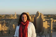 Ägyptens MumienBettany Hughes in Karnak on the 1st Pylon. (Sandstone Global)Bild: © Sandstone Global / Sandstone Global
