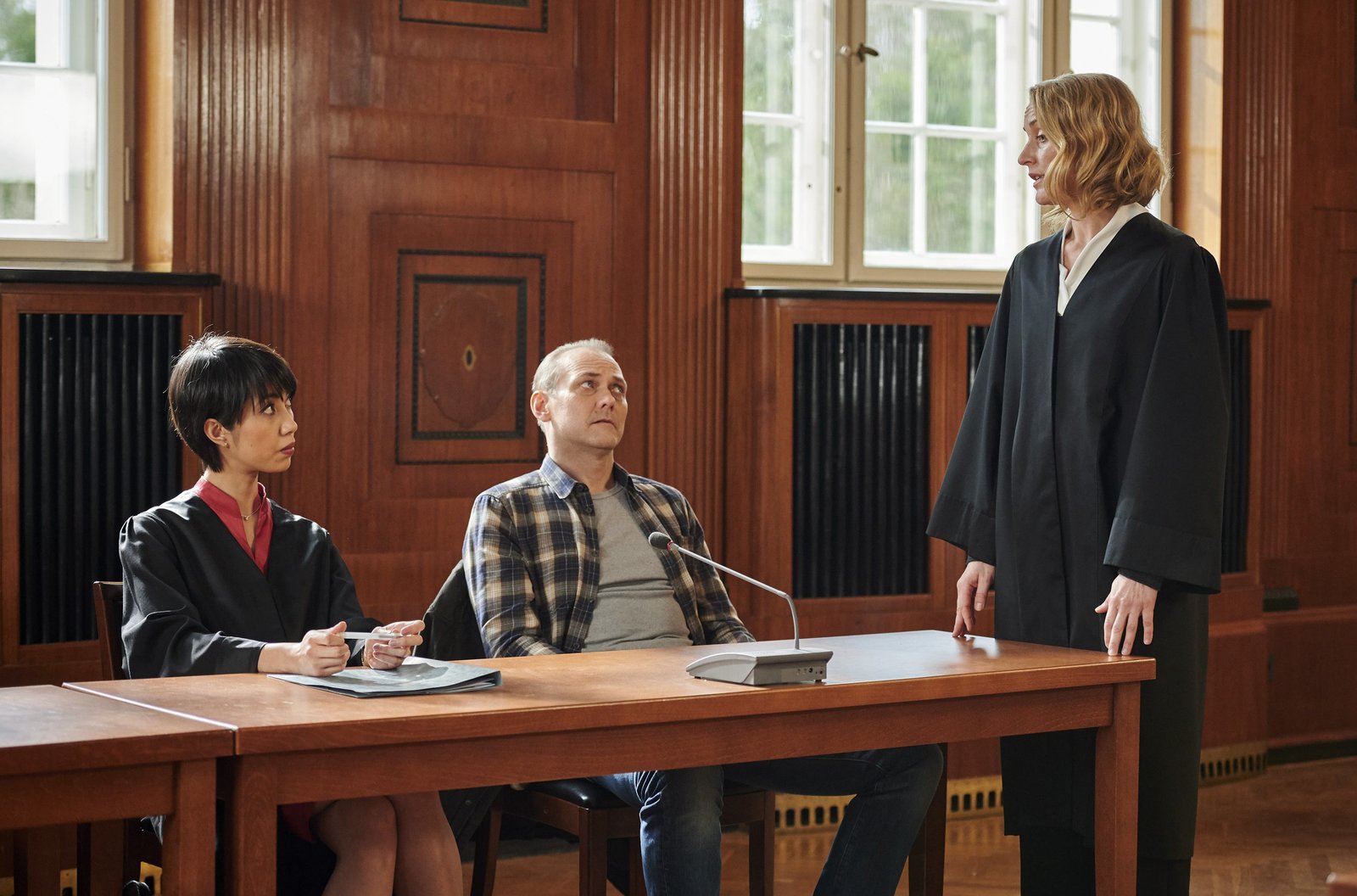 Stunde der WahrheitARD DIE HEILAND - WIR SIND ANWALT, II. Staffel (6 neue Folgen), Folge 12 "Stunde der Wahrheit", am Dienstag (02.06.20), um 20.15 Uhr im Ersten. Die blinde Anwältin Romy Heiland (Christina Athenstädt, r.) konfrontiert die gegnerische Anwältin Nayong (Le-Thanh Ho, l.) und deren Mandanten Dustin Rogge (Lorenz Christian Köhler, M.) mit ihrer Version des Tathergangs. © ARD/Reiner Bajo - honorarfrei, Verwendung gemäß der AGB im engen inhaltlichen, redaktionellen Zusammenhang mit genannter ARD-Sendung bei Nennung: "Bild: ARD/Reiner Bajo" (S2). ARD Programmdirektion/Bildredaktion, Tel. 089/590023879, mail bildredaktion@daserste.deBild: © ARD/Reiner Bajo / ARD-Programmdirektion