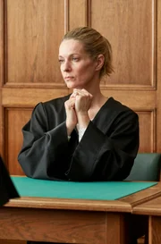 Gefahr im VerzugRomy Heiland (Lisa Martinek) konzentriert bei der Gerichtsverhandlung gegen ihre Assistentin Ada.Bild: © c ARD/Reiner Bajo