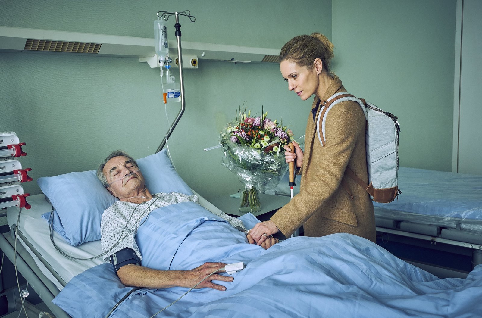 Tödliche TropfenRomy Heiland (Lisa Martinek, r.) besucht Robert Sander (Thomas Lawinky, l.) im Krankenhaus. Hat seine Pflegerin ihm eine Überdosis an Medikamenten verabreicht?Bild: © rbb/Gordon Muehle