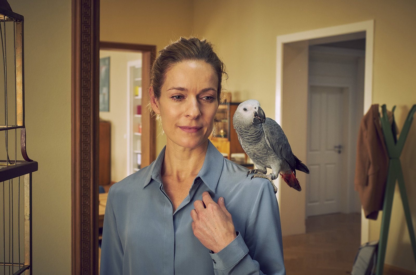 In dubio pro reoDer freche Graupapagei Youri ist Romy Heiland (Lisa Martinek) als einziges Relikt aus ihrer Beziehung zu ihrem Ex-Freund Ben geblieben.Bild: © c ARD/Gordon Muehle