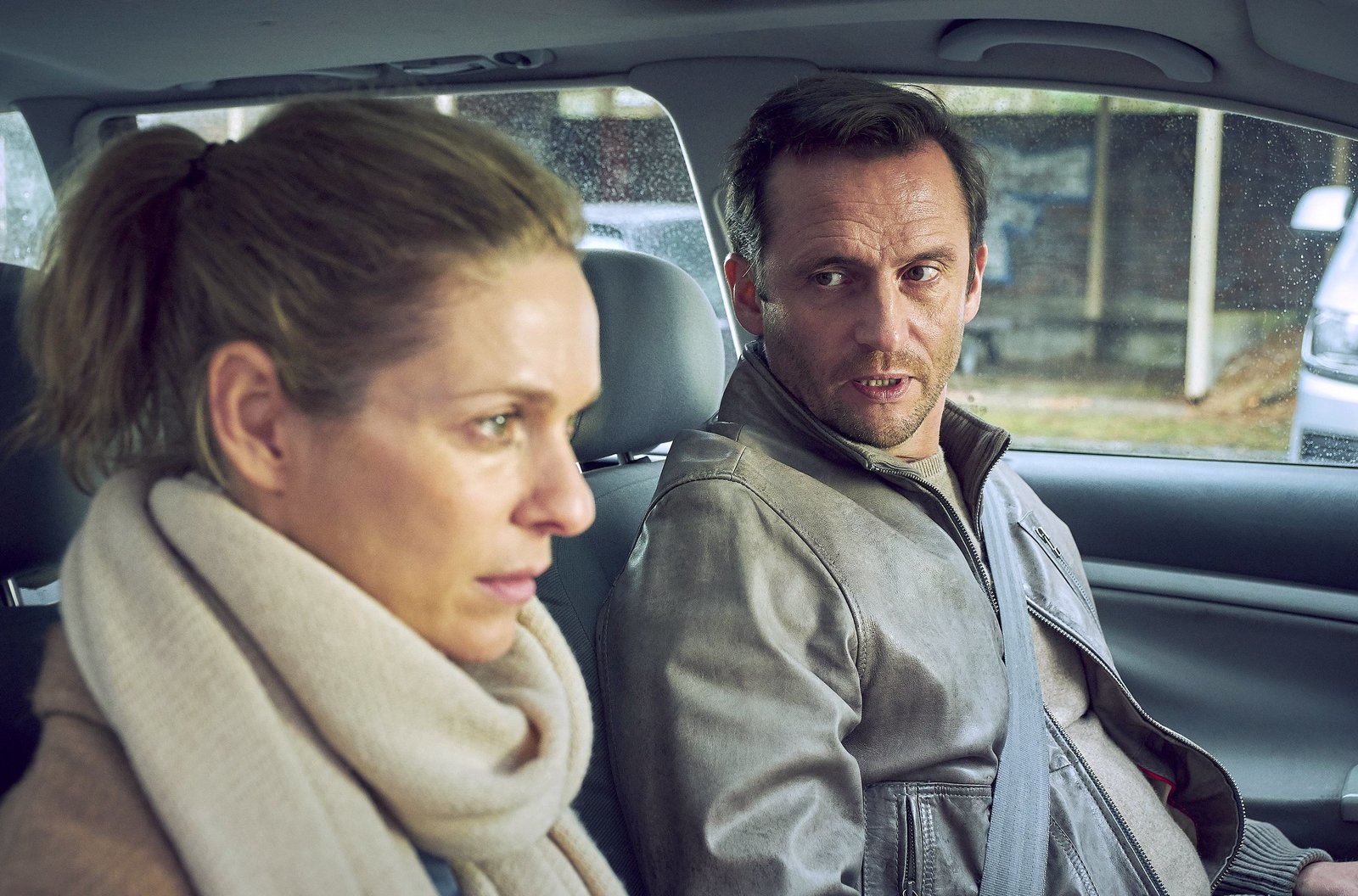 Wenn Du mich liebstRomy Heiland (Lisa Martinek, l.) stellt mit ihrem Mandanten Christian Fuchs (Sven Gerhardt, r.) einen Autounfall nach.Bild: © ARD/Gordon Muehle