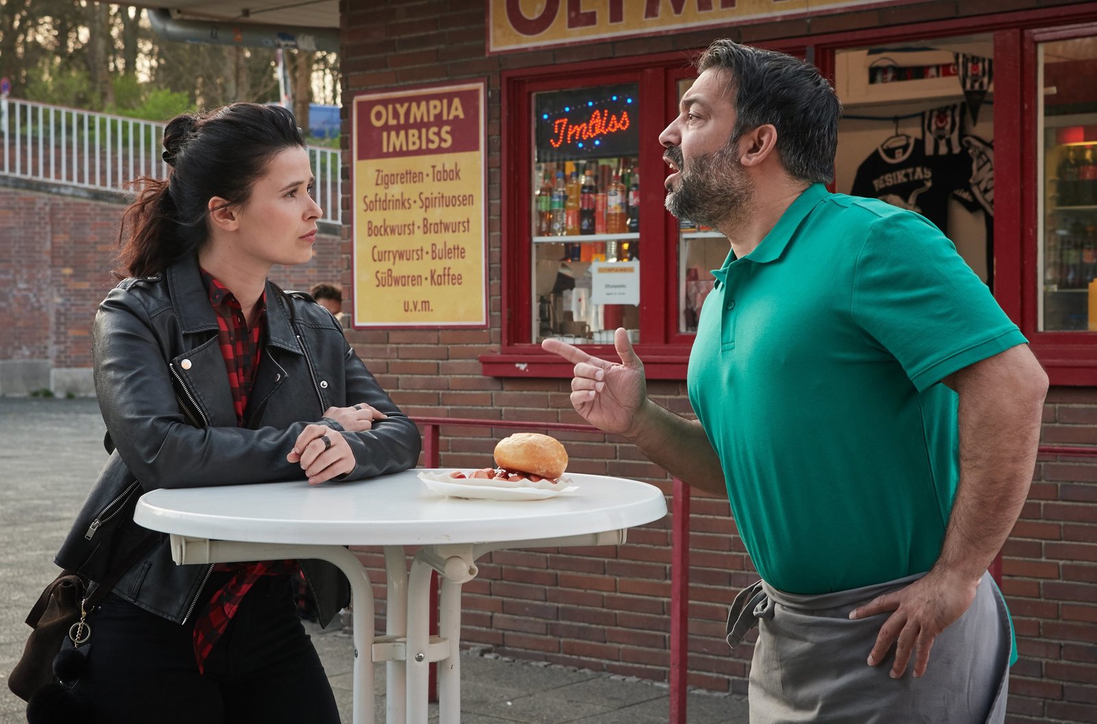 Tiefer FallAda Holländer (Anna Fischer, l.) sammelt Informationen bei dem Imbissbetreiber Mert Akin (Serkan Cetinkaya, r.).Bild: © c ARD/Reiner Bajo