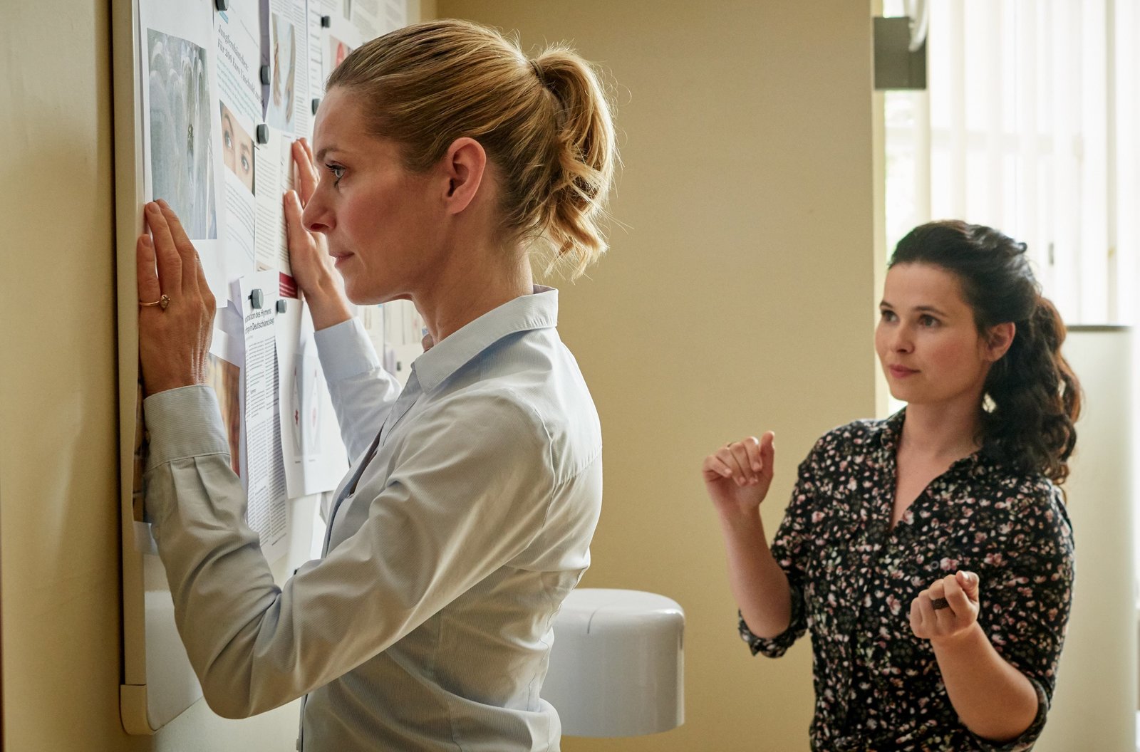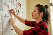 Verlorene UnschuldAda Holländer (Anna Fischer) sammelt an der Pinnwand Berichte über die Rekonstruktion von Jungfernhäutchen bei jungen Muslimminen.Bild: © c ARD/Reiner Bajo