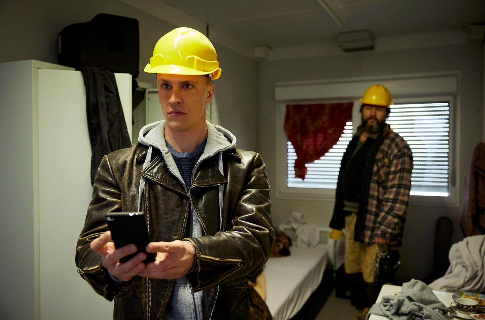 Dreiste DiebeRingo Holländer (Tim Kalkhof, l.) sucht in der Unterkunft eines Mandanten, dem Diebstahl auf einer Großbaustelle vorgeworfen wird, nach entlastenden Beweisen; Liviu Bunesco (Jörg Steinberg, r.), ein Kollege, gibt sich ahnungslos.Bild: © ARD/Rudolf Wernicke