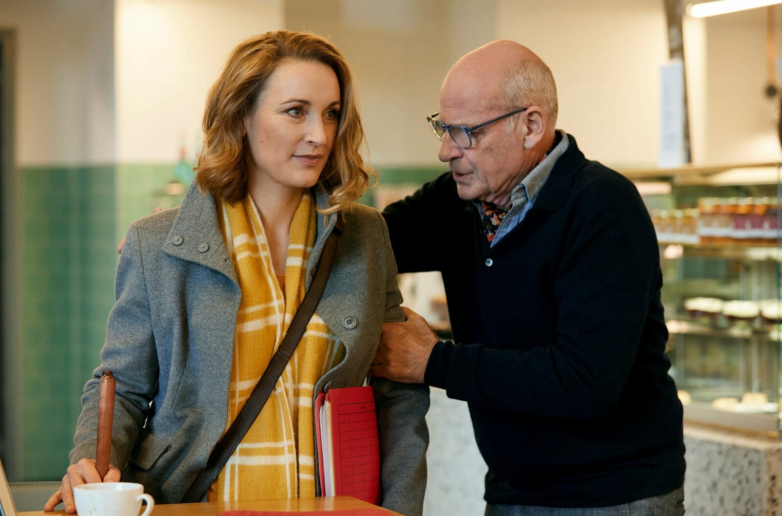 Der unsichtbare FeindRomy Heiland (Christina Athenstädt, l.) freut sich, ihren Vater Paul Heiland (Rüdiger Kuhlbrodt, r.) in der Gerichtskantine zu treffen.Bild: © ARD/Rudolf Wernicke