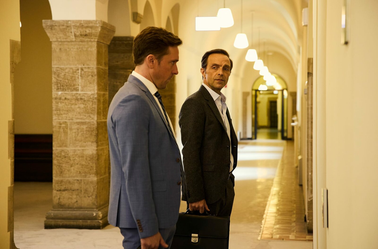 Täter, Opfer, MieterBen Ritter (Peter Fieseler, l.) hat mit Romy geschlafen, Staatsanwalt Rudi Illi? (Aleksandar Iovanovic, r.) ist mit ihr liiert.Bild: © ARD/Rudolf Wernicke