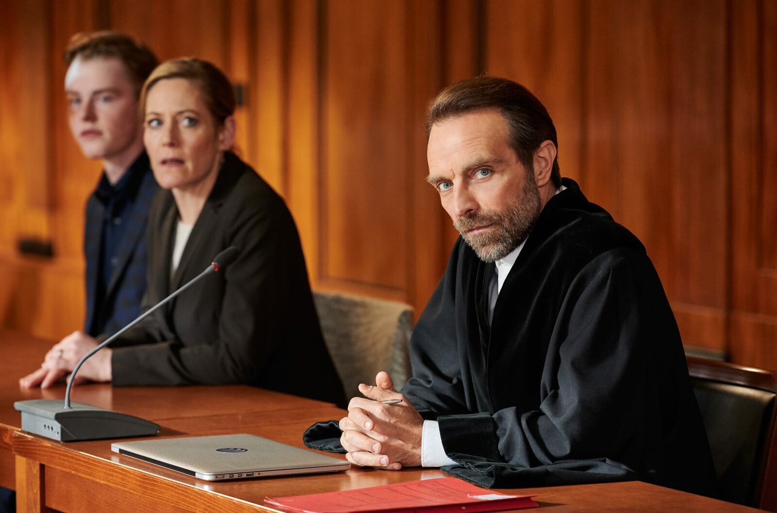 Stunde der WahrheitARD DIE HEILAND - WIR SIND ANWALT, II. Staffel (6 neue Folgen), Folge 12 "Stunde der Wahrheit", am Dienstag (02.06.20), um 20.15 Uhr im Ersten. Staatsanwalt Rudi Illic (Aleksandar Jovanovic, r.) setzt sich für den Abiturienten Vincent Wellenbrink (Emil von Schönfels, l.) und dessen Mutter Kathrin Wellenbrink (Stephanie Japp, M.) ein, die die Täter bestraft sehen wollen. © ARD/Reiner Bajo - honorarfrei, Verwendung gemäß der AGB im engen inhaltlichen, redaktionellen Zusammenhang mit genannter ARD-Sendung bei Nennung: "Bild: ARD/Reiner Bajo" (S2). ARD Programmdirektion/Bildredaktion, Tel. 089/590023879, mail bildredaktion@daserste.deBild: © ARD/Reiner Bajo / ARD-Programmdirektion