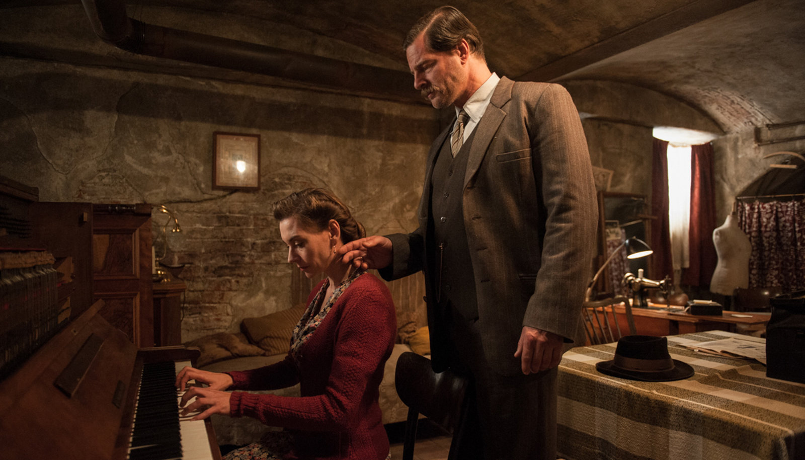 Die Himmelsleiter - Sehnsucht nach MorgenAnna (Christiane Paul) gibt dem Bauern Josef Halfen (Henning Baum) Klavierstunden.Bild: © ARD Degeto/Stephanie Kulbach