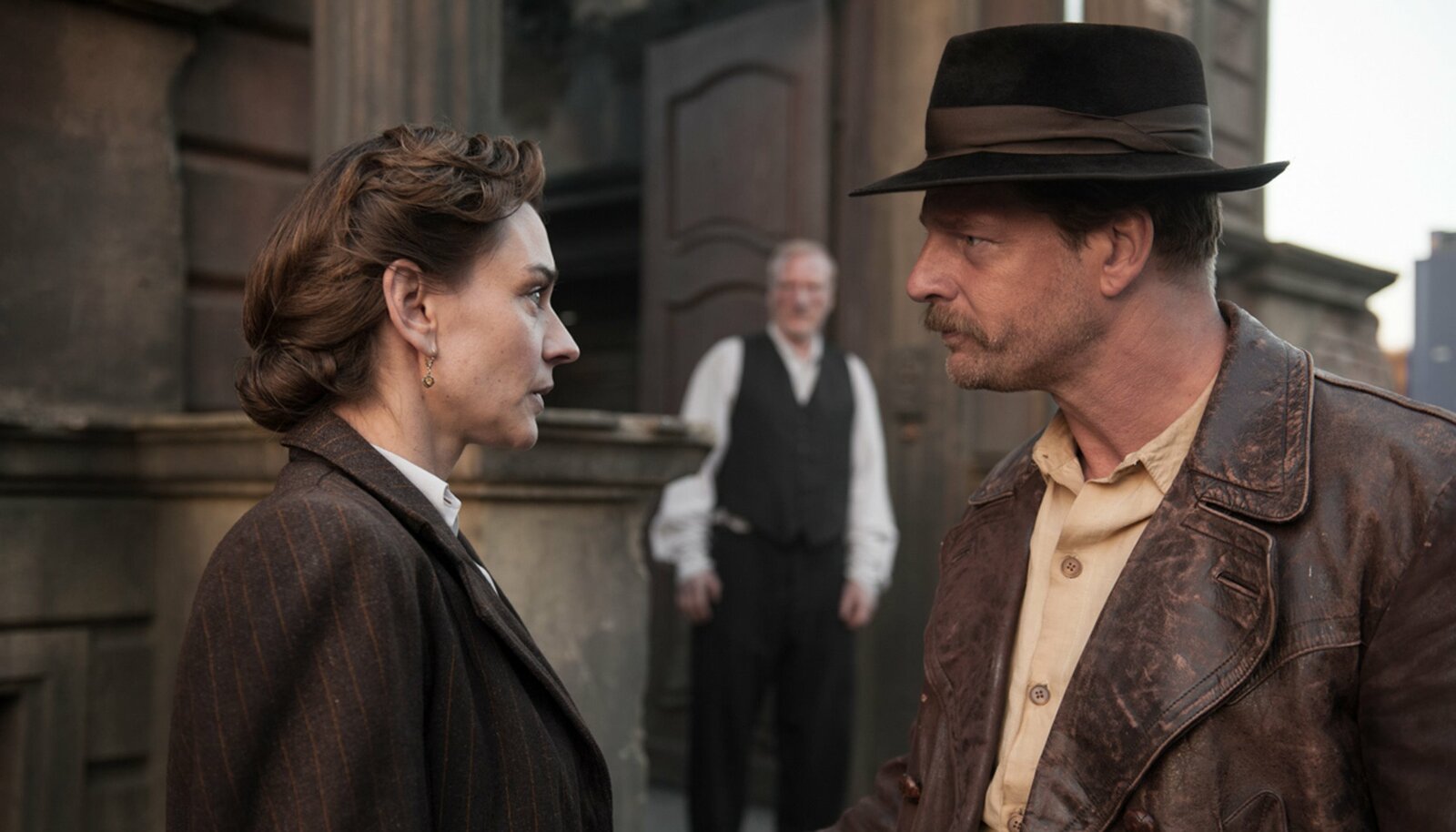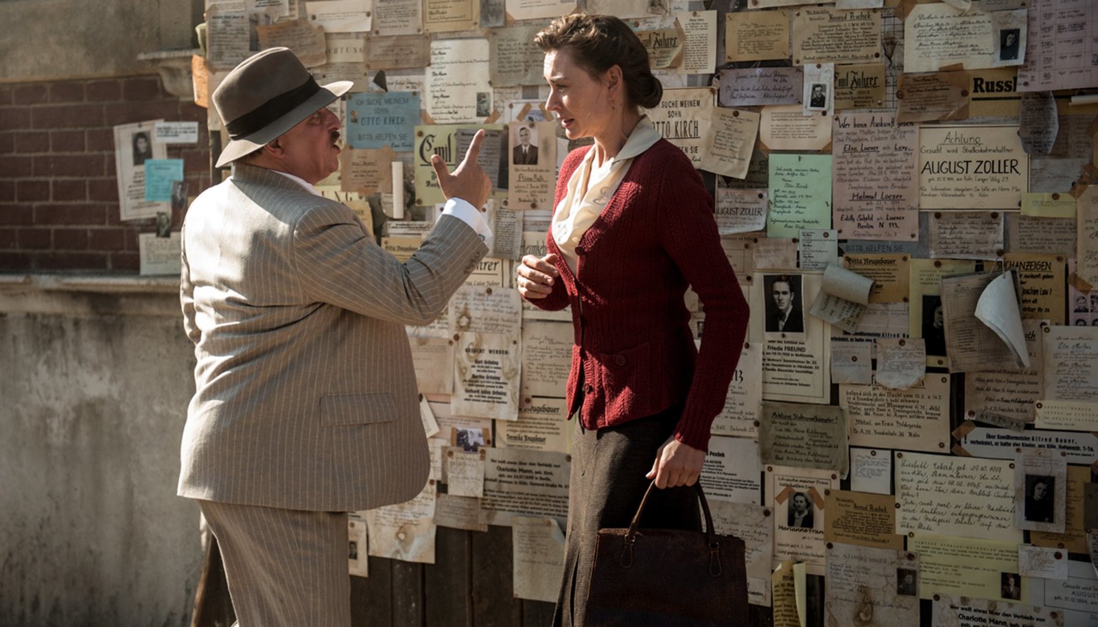 Teil 1Der Ex-Parteibonze Armin Zettler (Axel Prahl) hat Angst vor Anna (Christiane Paul), die beim Spruchkammerverfahren über seine braune Vergangenheit auspacken will.Bild: © HR/Degeto/Stephanie Kulbach