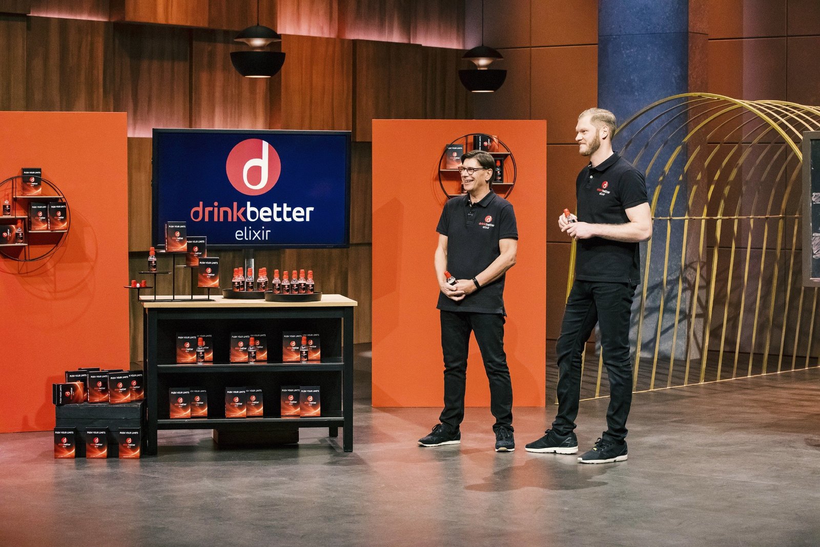 Folge 6Christian Monzel (l.) und Johannes Bitter aus Tangstedt präsentieren mit "drinkbetter" ein Leistungs-Booster Elixier. Sie erhoffen sich ein Investment von 200.000 Euro für 20 Prozent der Anteile an ihrem Unternehmen.Bild: © TVNOW / Bernd-Michael Maurer