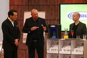 Folge 5Investor Ralf Dümmel (l.) schaut bei "Glasello" um Stevan Sokola (49, M.) und José Luis Llorens Garcia (42) genauer hin.Bild: © VOX / Stefan Gregorowius