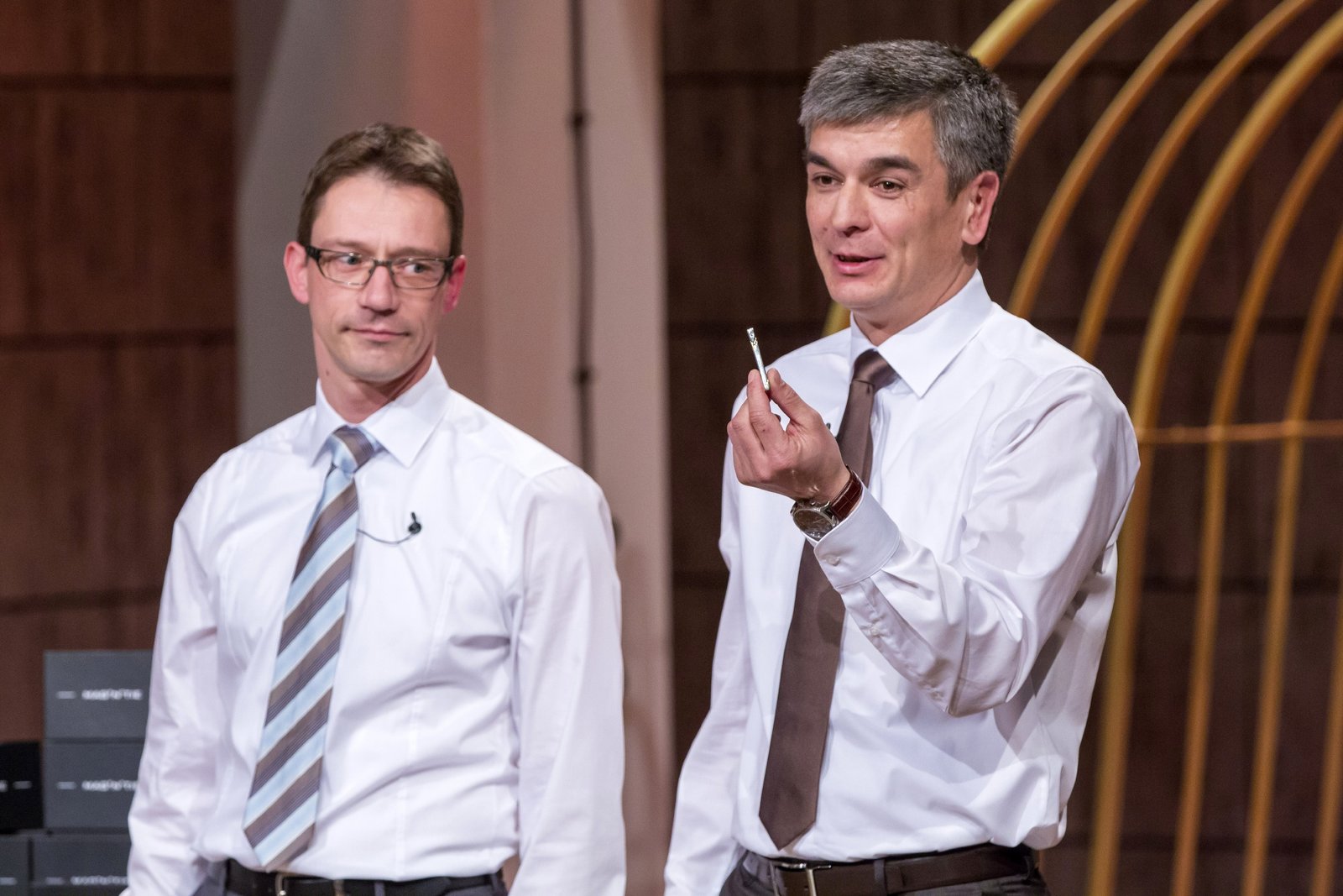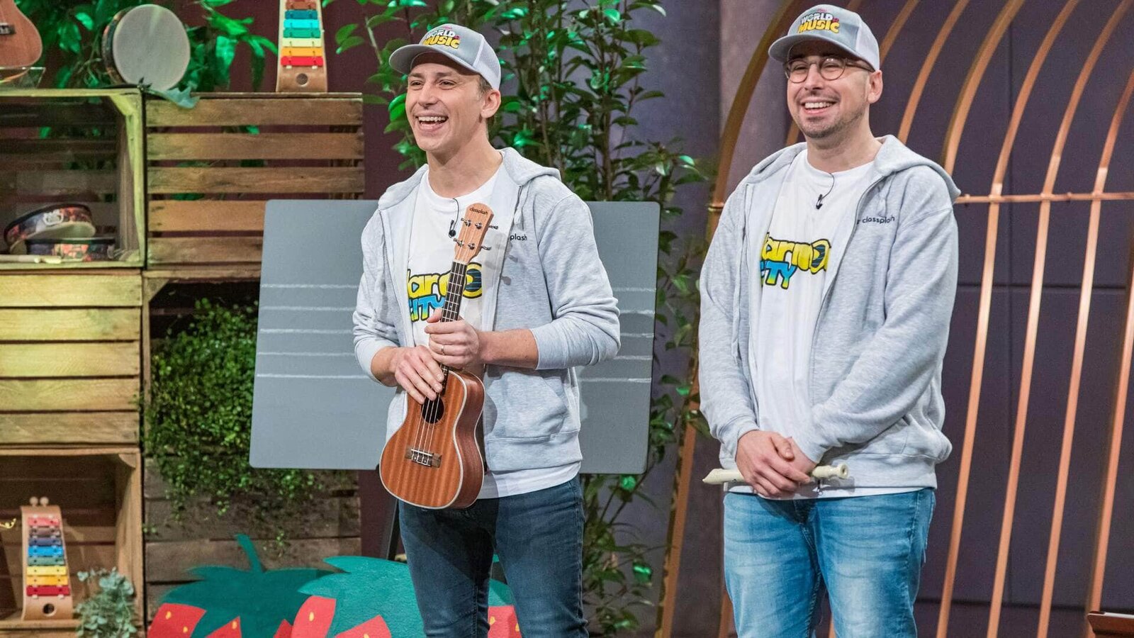 Folge 1Die Brüder Rui Manuel (l.) und Joao Carlos Duarte Ramalheiro aus Karlsruhe präsentieren mit "Classplash" Musik-Lernapps für Kinder. Sie erhoffen sich ein Investment von 350.000 Euro für 10 Prozent der Anteile an ihrem Unternehmen.Bild: © TVNOW / Bernd-Michael Maurer
