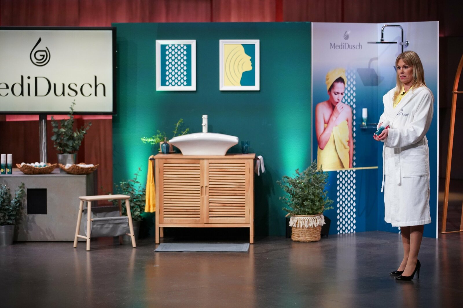 Folge 6Jacqueline Torres Martinez präsentiert "MediDusch"- den Dusch-Schaum bei Erkältung. Sie erhofft sich ein Investment von 75.000 Euro für 20 Prozent der Anteile an ihrem Unternehmen.Bild: © ntv