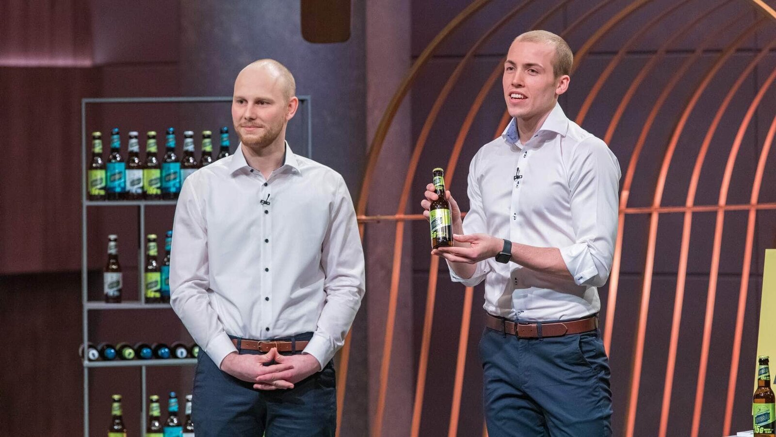 Folge 3Erik Dimter (r.) und Tristan Brümmer aus Hamburg präsentieren mit "JoyBräu" alkoholfreies Proteinbier. Sie erhoffen sich ein Investment von 300.000 Euro für 10 Prozent der Anteile an ihrem Unternehmen.Bild: © TVNOW / Bernd-Michael Maurer