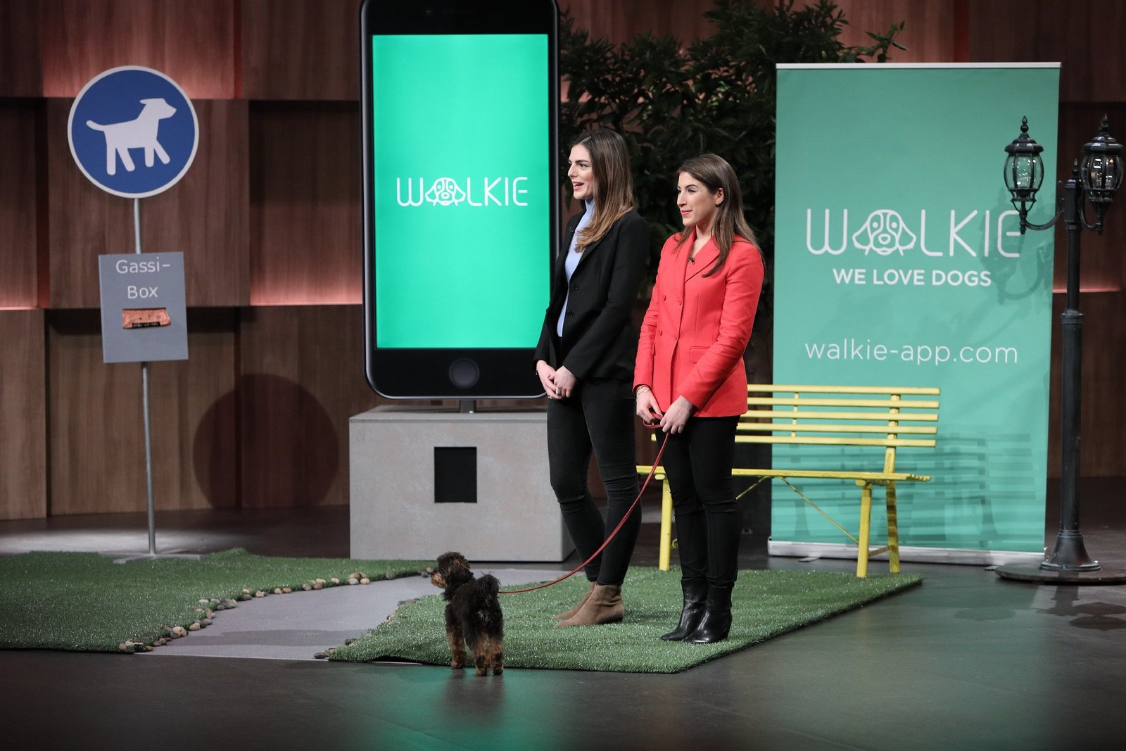 Folge 2Anna-Alexia Hoffmann (l.) und Lisa Jedlicki präsentieren "Walkie App". Über die App können sich Hundebesitzer und-betreuer kontaktieren. Sie erhoffen sich ein Investment von 300.000 Euro für 20 Prozent der Anteile an ihrem Unternehmen.Bild: © MG RTL D / Frank Hempel