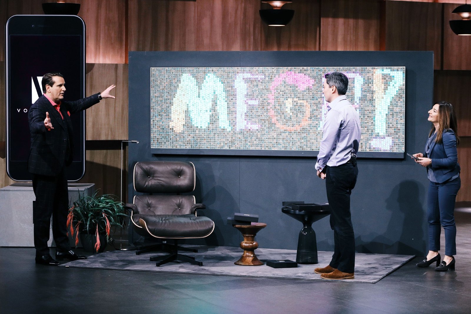 Folge 1Tiziana Kleine und Florian Nübling aus Berlin präsentieren mit "Volatiles" die erste leuchtende und voll programmierbare Glasmosaikfliese. Sie erhoffen sich ein Investment von 500.000 Euro für 10 Prozent der Anteile an ihrem Unternehmen. Investor Ralf Dümmel (l.) nimmt das Angebot genau unter die Lupe.Bild: © MG RTL D / Frank W. Hempel