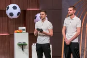 Folge 1David Krusch (l.) und Manuel Kössl aus Schlierbach präsentieren mit _GRPSTAR" einen zweiteiligen Sportstollen der aus Stahl und Aluminium besteht. Dadurch ist er variabel in der Höhe und kann der Bodensituation angepasst werden. Sie erhoffen sich ein Investment von 85.000 Euro für 10 Prozent der Anteile an ihrem Unternehmen.Bild: © TVNOW / Bernd-Michael Maurer