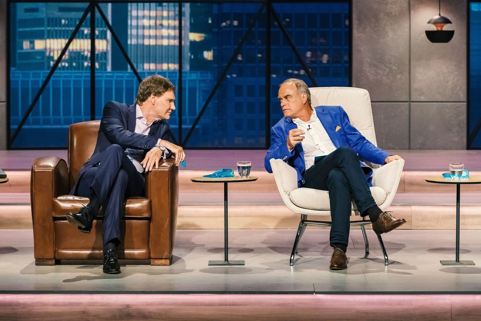 Folge 3Die Investoren Carsten Maschmeyer (l.) und Dr. Georg Kofler nehmen die intelligente Aufbissschiene von "bruXane" genau unter die Lupe.Bild: © TVNOW / Bernd-Michael Maur