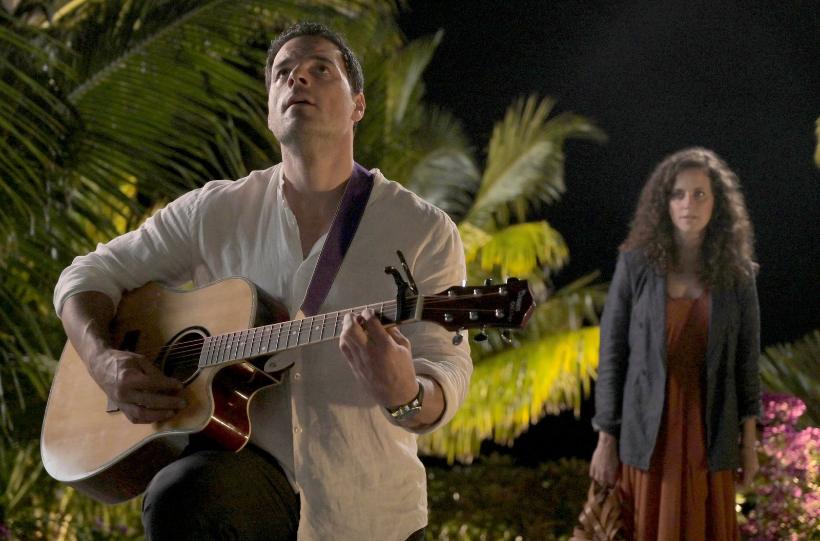 Das RätselVolles Risiko: Daniel (Tobias Licht) singt ein Ständchen für Filipa (Anja Knauer).Bild: © ARD Degeto/Daniel Villiers