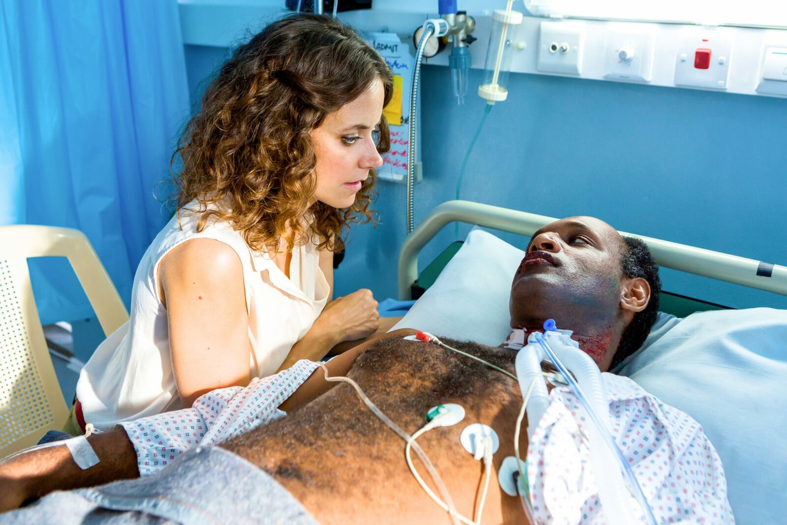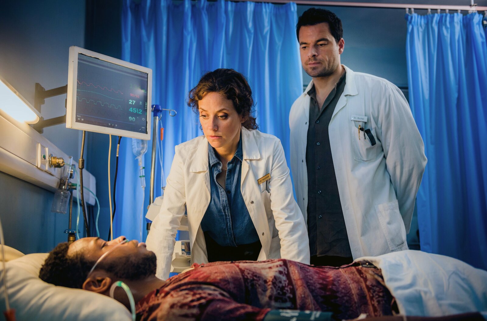 Die MutprobeJean (Dimitri Abold) ist in akuter Lebensgefahr! Daniel (Tobias Licht, re.) und Filipa (Anja Knauer) sorgen sich um den mutigen Lebensretter.Bild: © ARD Degeto/Daniel Villiers