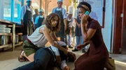 Neustart auf MauritiusEinsatz für Filipa (Anja Knauer): Der Kellner Jimmy (Selam Tadese) ist zusammengebrochen. Stella (Dennenesch Zoudé) ruft den Rettungswagen.Bild: © HR/Degeto/Tivoli Film/Diensen Pamben