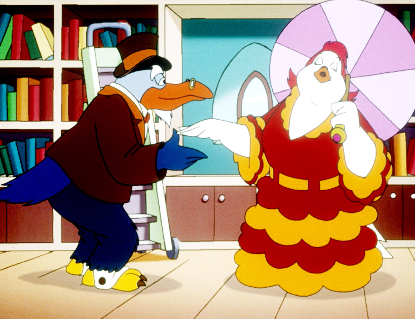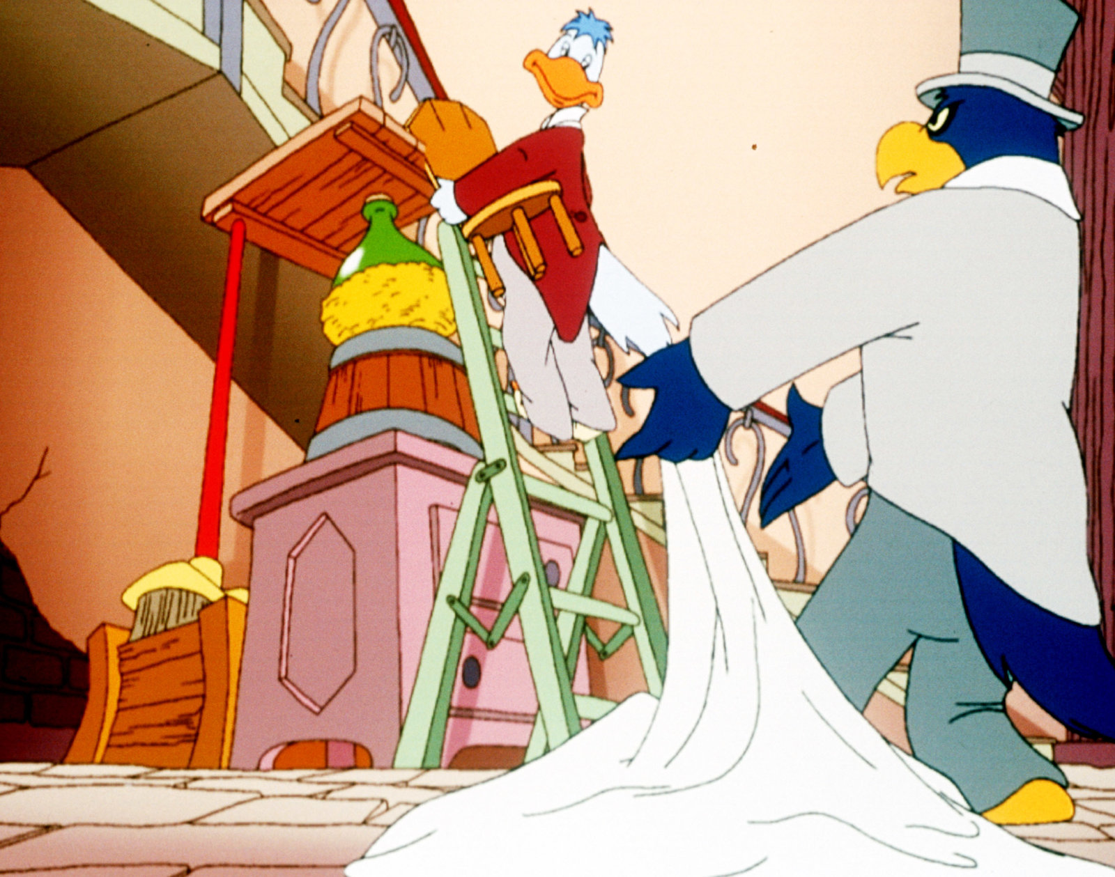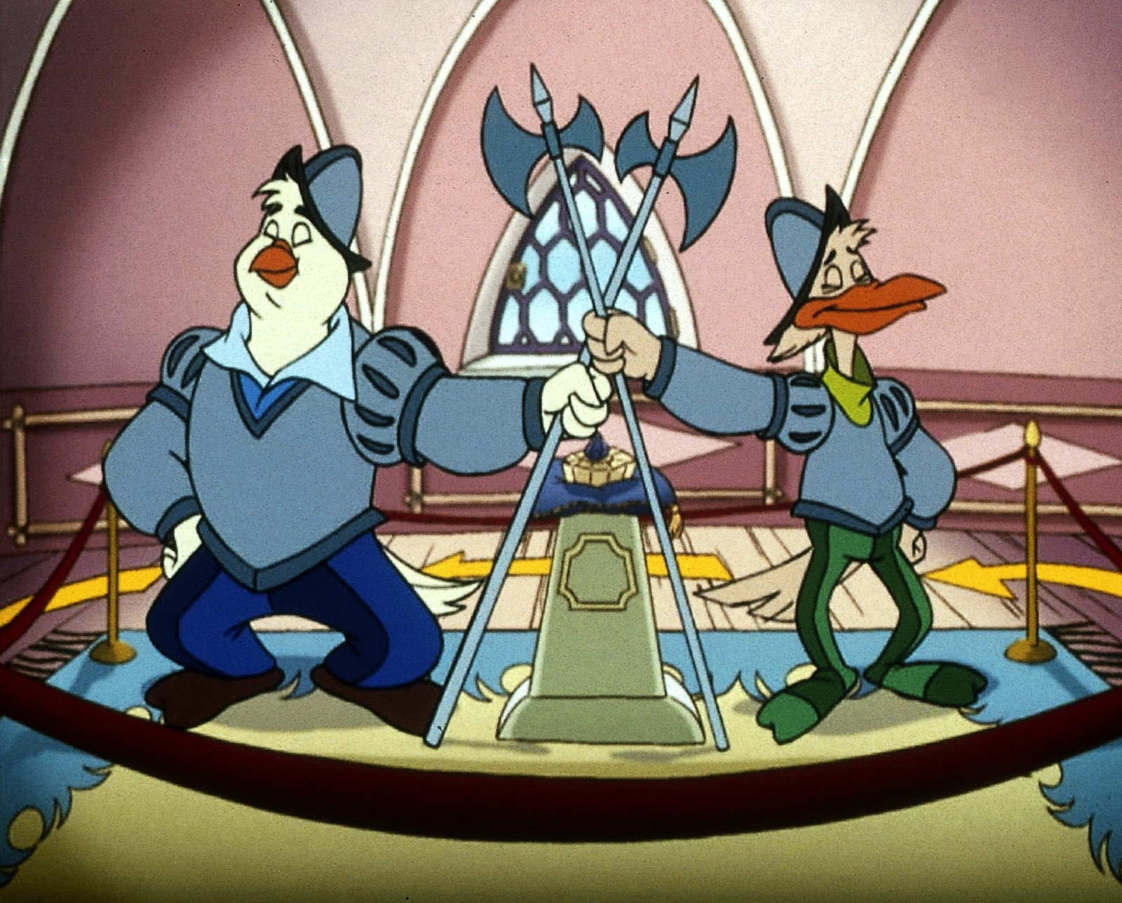 Die Statue"Die Jagd nach dem Kju Wang", "Die Statue." Ein Brief flattert in den Palast: Graf Yagor erlaubt sich untertänigst, Herzog Cirillo und Ardelia zur feierlichen Enthüllung einer Statue der beiden einzuladen. Mit dem Luftschiff fliegen sie also nach Rhondia, dem Sitz des Grafen Yagor. Aber Yagor wäre nicht Yagor, führte er nicht wieder etwas im Schilde, um an den kostbaren Kju Wang des Herzogs zu gelangen. Er hat den Rattenkönig beauftragt, mit seiner Bande den Herzog, Ardelia und - zum Schein - auch ihn selbst gefangen zu nehmen. Yagor will dann den großen Befreier spielen, wofür er dann wiederum so viel Dankbarkeit vom Herzog einfordert, dass dieser ihm seinen Thron überlassen soll. Ganz so einfach ist die Sache jedoch nicht.Bild: © ORF eins