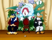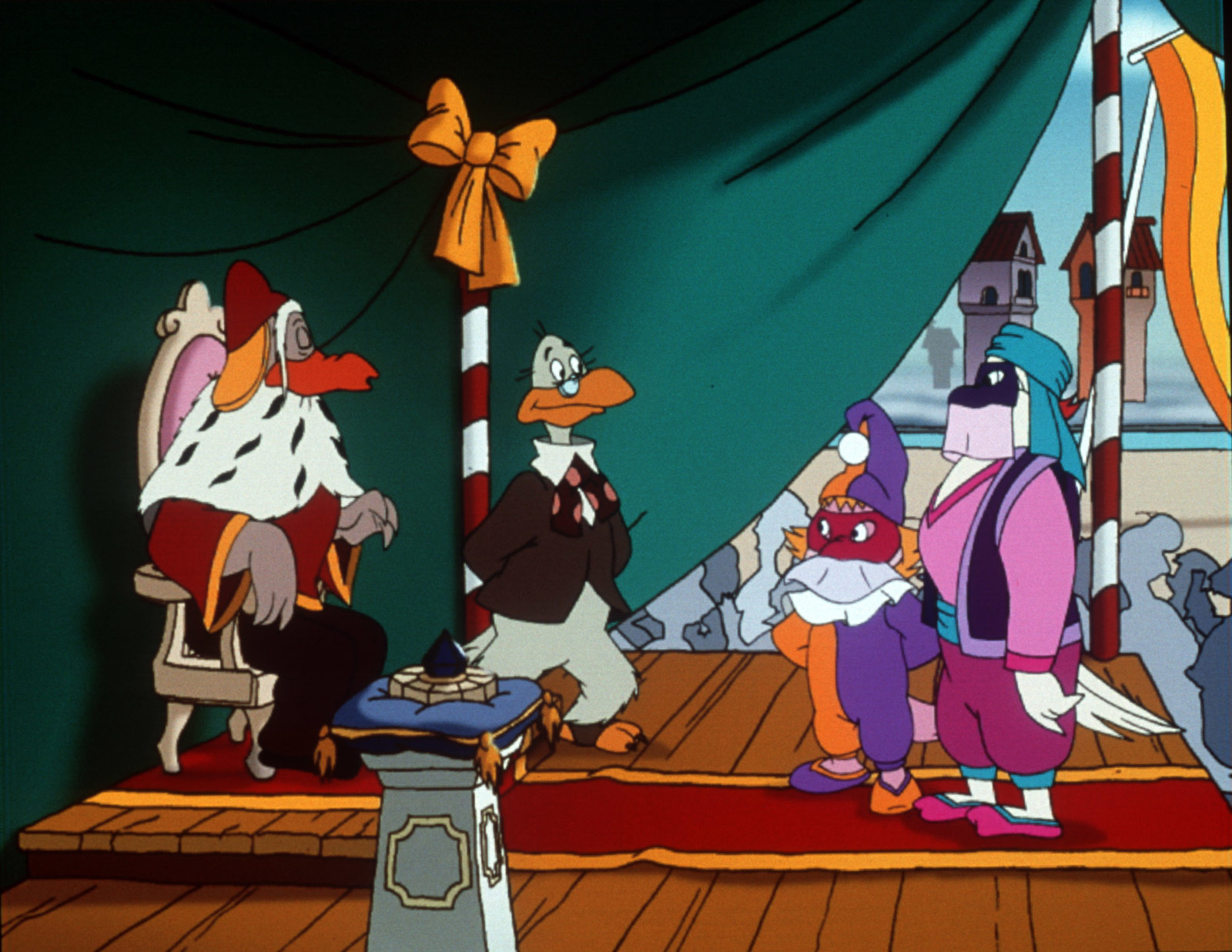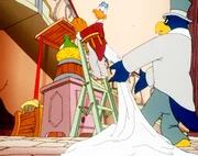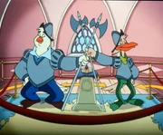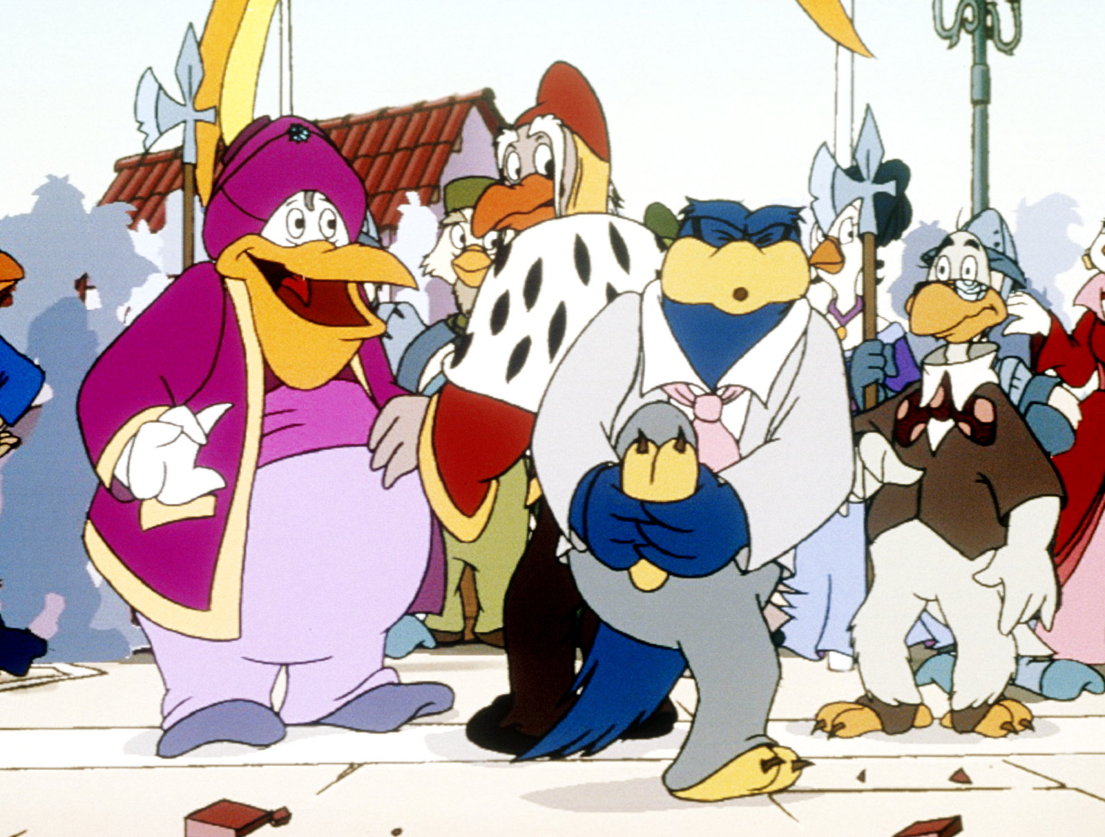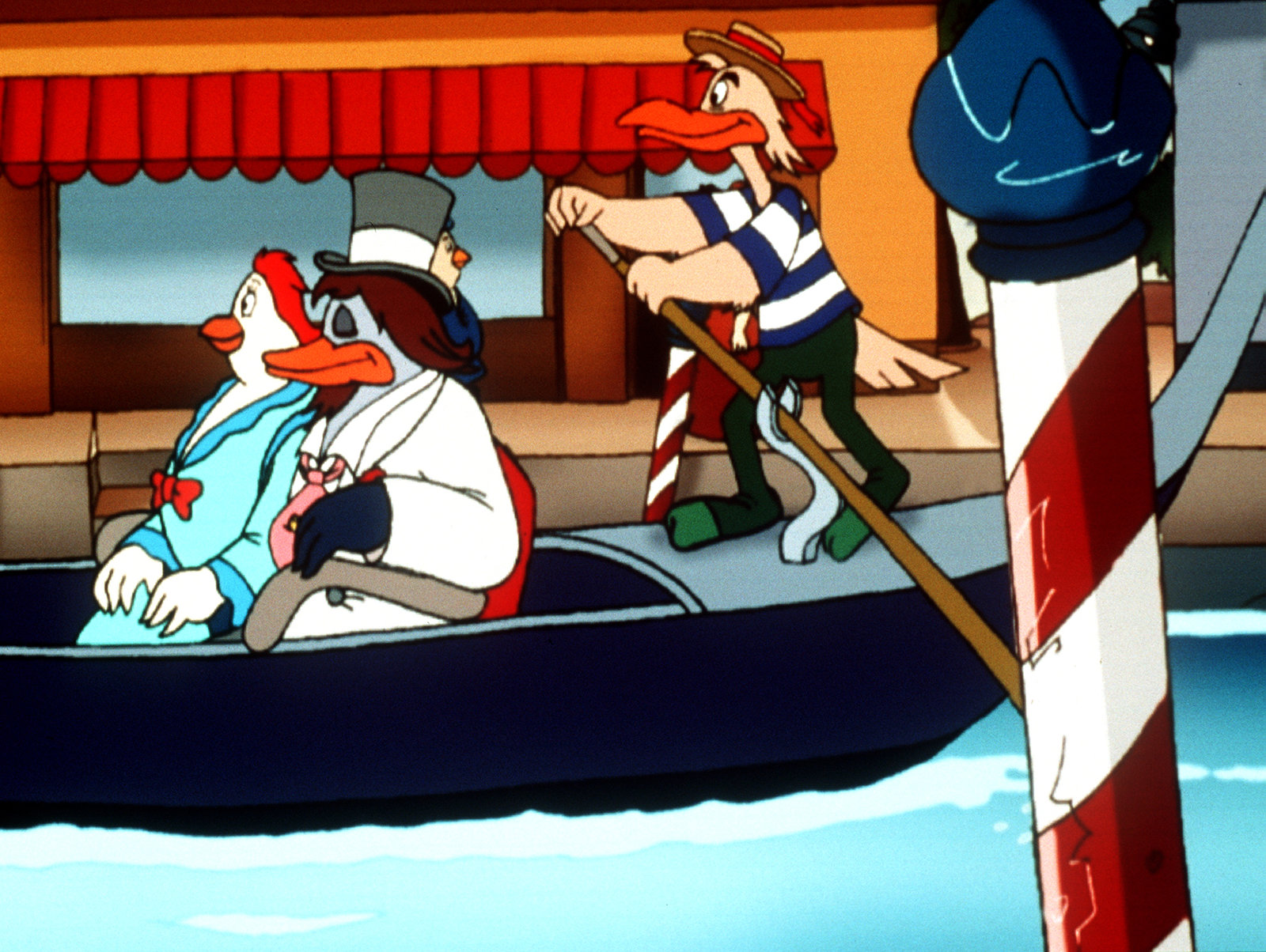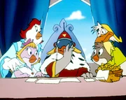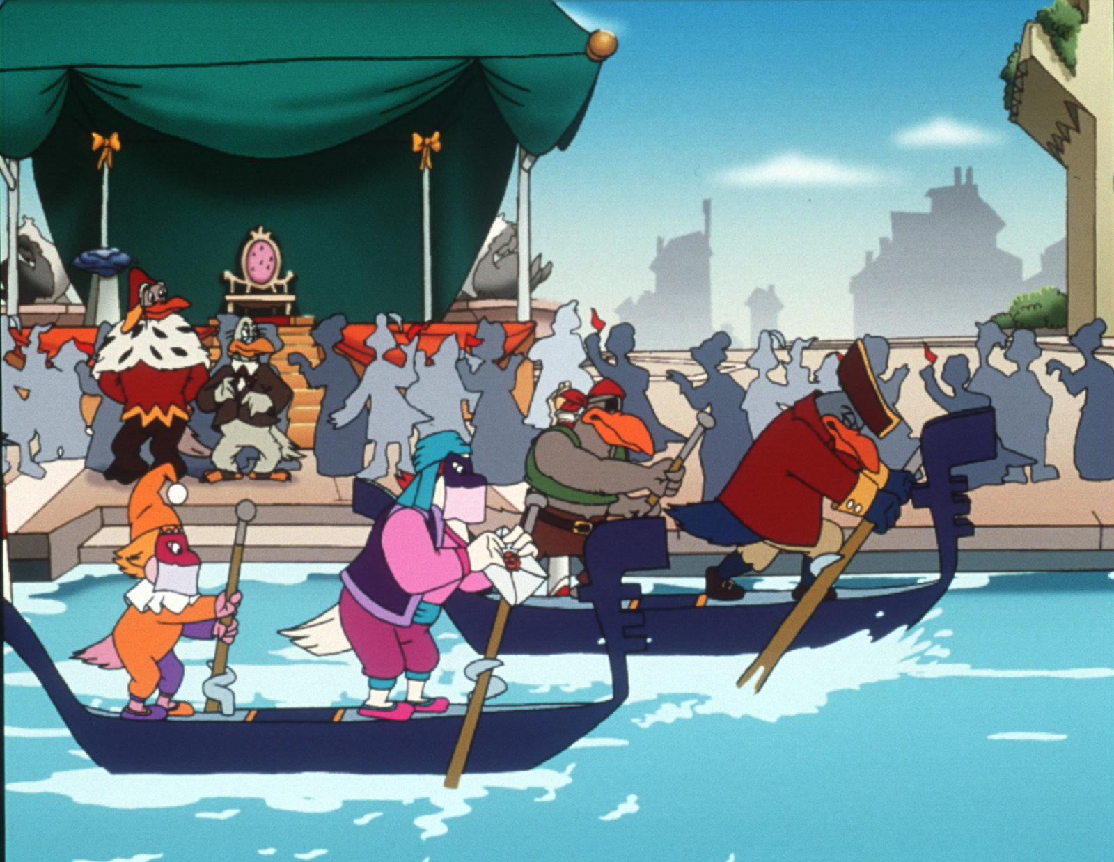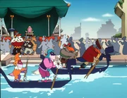 Die große Regatta"Die Jagd nach dem Kju Wang", "Die große Regatta." Die gesamte geflügelte Welt von Venedig fiebert der großen Karnevalsregatta entgegen. Drei Teilnehmer-Paare sollen in die Endausscheidung gehen. Marco und Berto, die Bum-Bum-Zwillinge und die zwei geheimnisvollen Piraten qualifizieren sich. Da das Rennen in Karnevalskostümen abgehalten wird, ist es für Yagor ein Leichtes, sich zusammen mit dem Rattenkönig auf einen hinterhältigen Plan zu konzentrieren. Der Sieger des Rennens soll den Kju Wang eigenhändig auf die Turmspitze fliegen. Yagor, der unbedingt siegen will, hat keinesfalls vor, den Kju Wang auf die Turmspitze zu setzen. Er sieht seine Chance kommen.Bild: © ORF eins