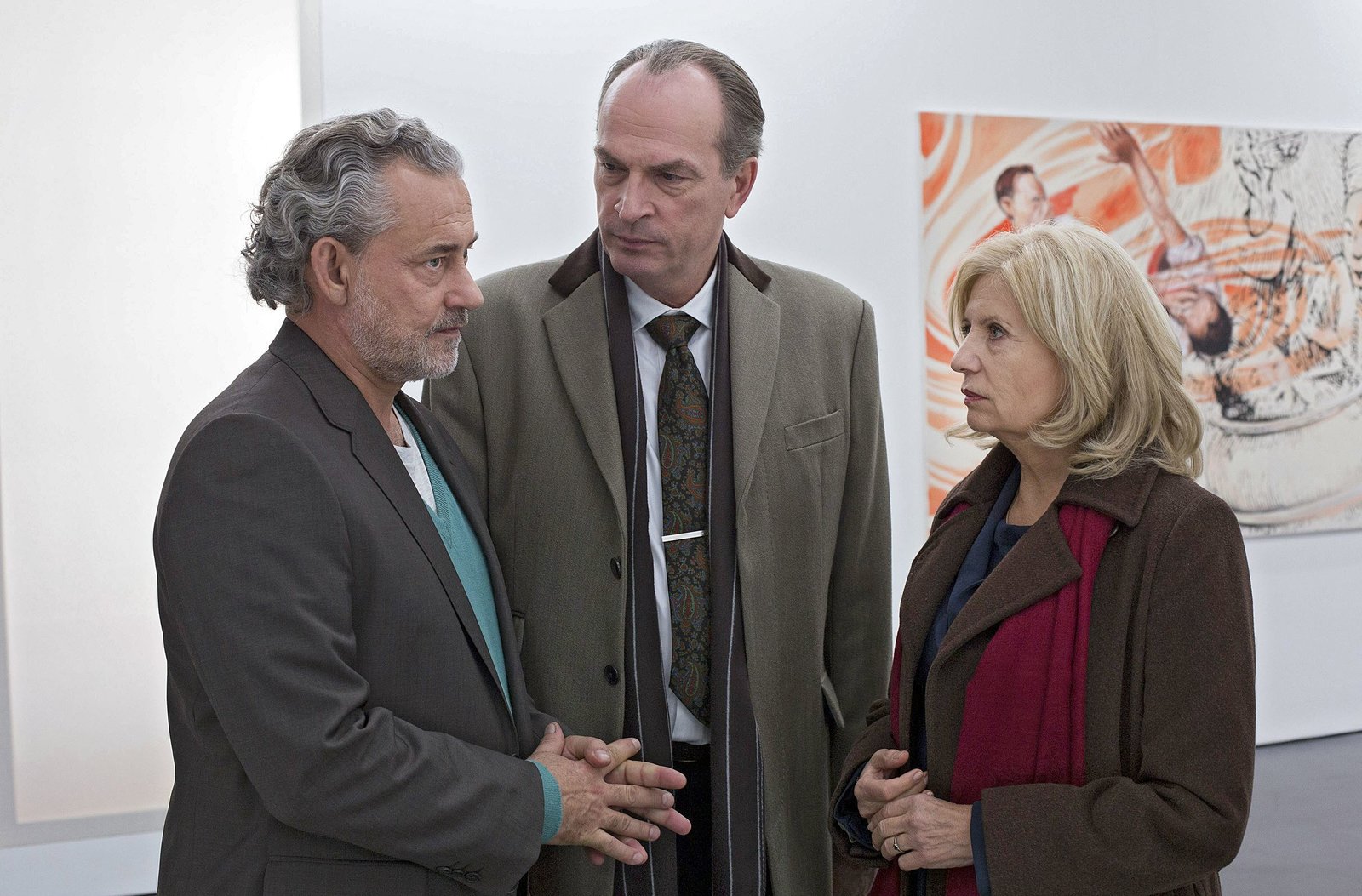 Der nächste ZugIsa (Sabine Postel, r.) und Gellert (Herbert Knaup, M.) treffen Walter Siebholz (Rolf Kanies, l.) in der Galerie seines verstorbenen Bruders.Bild: © ARD/Georges Pauly