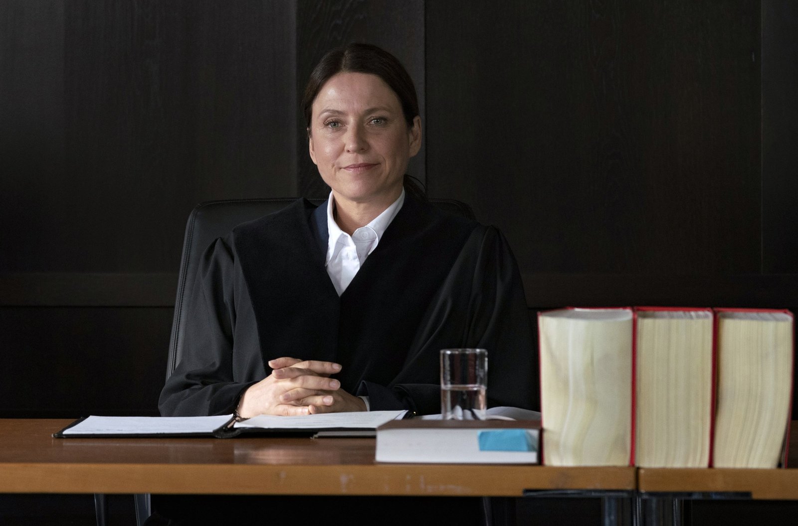NothaltRichterin Burghardt (Berrit Arnold) verfolgt den Prozess.Bild: © ARD/Georges Pauly