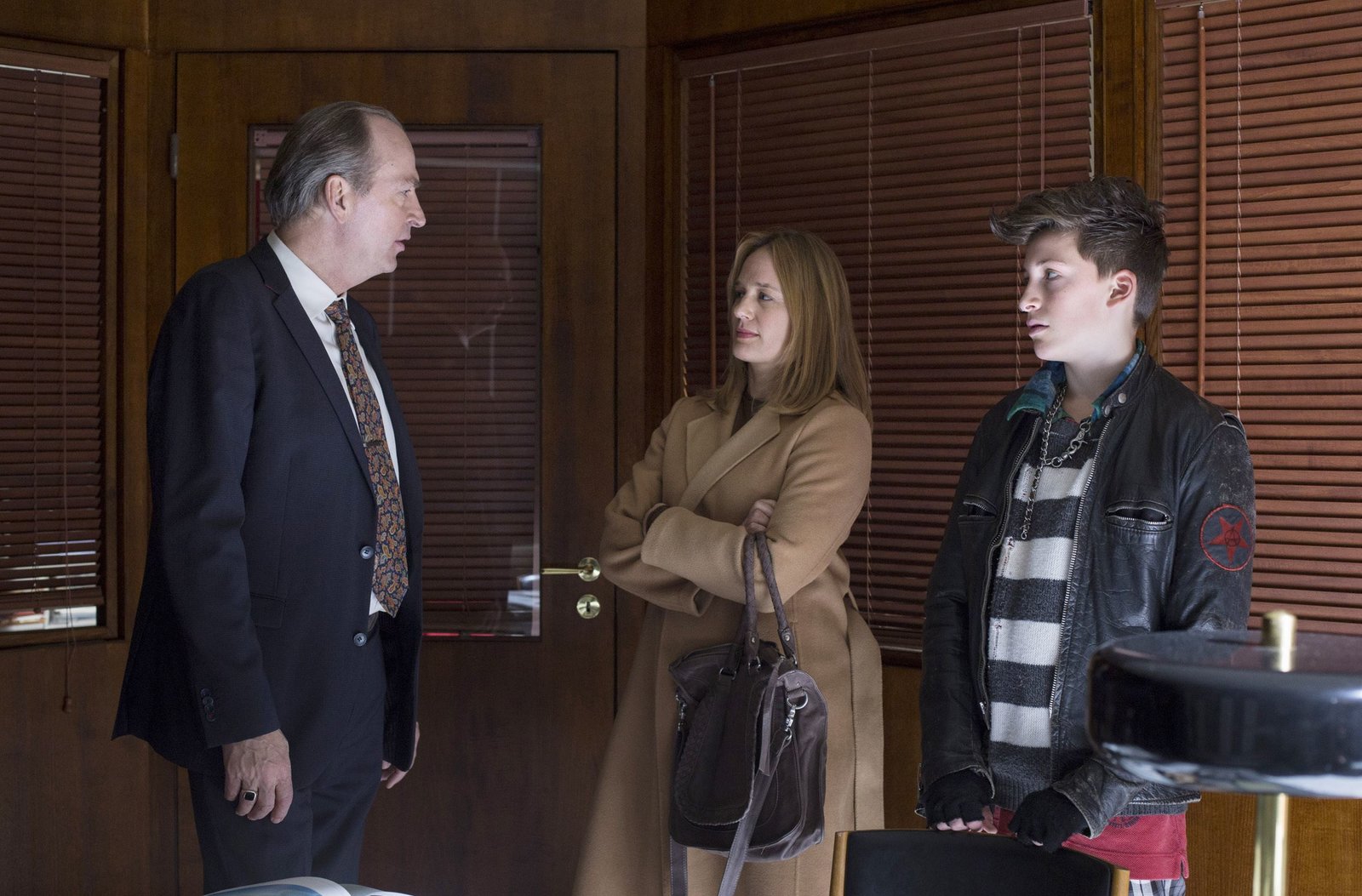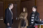 Eine böse FalleGellert (Herbert Knaup, l.) erhält in der Kanzlei Besuch von seiner Ex-Frau Nr.2 Maja (Sonsee Neu, M.) - er muss einige Tage auf seinen Sohn Viktor (Levin Liam, r.) aufpassen.Bild: © ARD/Georges Pauly