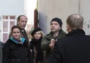Der letzte VorhangOrtstermin im Theater mit em neuen Intendanten Hartmut Wiesner (Janning Kahnert, l.), Gellert (Herbert Knaup, 2.v.l.) und dessen Mandant Johannes von Gülden (Bernd Stegemann, 2.v.r.) und Richter Greinert (Thomas Kügel, r.). Hat von Gülden ein Recht darauf, weiterhin als Geist in "Das Gespenst von Canterville" besetzt zu werden?Bild: © ARD/Georges Pauly