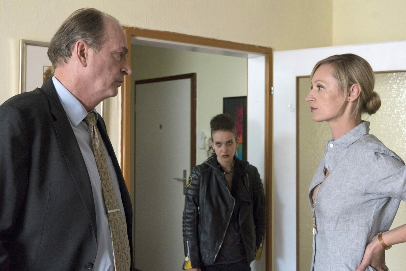 IrrwegeMarkus Gellert (Herbert Knaup, l.) spricht mit seiner Bekannten Ilona Grohne (Barbara Sotelsek, r.), deren Tochter Manuela (Lili Zahavi, M.) beim Ladendiebstahl erwischt wurde.Bild: © ARD/Georges Pauly