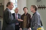IrrwegeHauptkommissar Ole Hansen (Robert Gallinowski, l.) und Gerd Wohlers (Josef Heynert, 2.v.l.) präsentieren Gerd Matuschek (Uwe Bohm, 2.v.r.) im Beisein von Isa von Brede (Sabine Postel, r.) erdrückende Beweise.Bild: © ARD/Georges Pauly