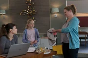 KinderkramGudrun Wohlers (Katrin Pollitt. r.) hat als Pflegekind die aufmüpfige Tina (Cya Emma Blaack, M.) zugeteilt bekommen. Yasmin Meckel (Sophie Dal, l.) und Gudrun versuchen, das zehn Jahre alte Mädchen in der Kanzlei zu beschäftigen.Bild: © ARD/Georges Pauly