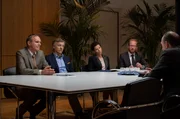 Im NetzMarkus Gellert (Herbert Knaup, l.) muss beweisen, dass Benedict Vollmer (Sebastian Prasse, 2.v.r.) seinem Mandanten Daniel Bienert (Daniel Krauss, r.) Idee und Quellcode für eine neuartige App geklaut und an den Softwareriesen TEDCOM, vertreten durch desssen Anwalt Wieland Krohn (Christoph M. Ohrt, 2.v.l.) verkauft hat.Bild: © ARD/Georges Pauly
