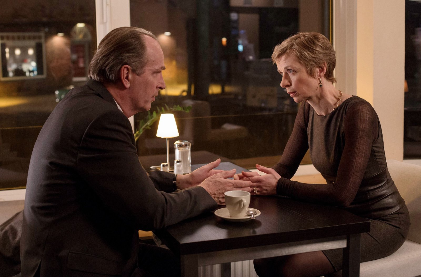 Der letzte VorhangAussprache: Gellert (Herbert Knaup, l.) und seine Ex-Frau Nr.1 Sylvia (Anna Stieblich, r.).Bild: © ARD/Georges Pauly