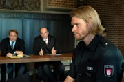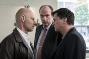 Schräge VögelMarkus Gellert (Herbert Knaup, M.) beobachtet das Kräftemessen zwischen Marco Sladic (Simon Licht, l.) und Gerd Matuschek (Uwe Bohm, r.).Bild: © ARD/Georges Pauly