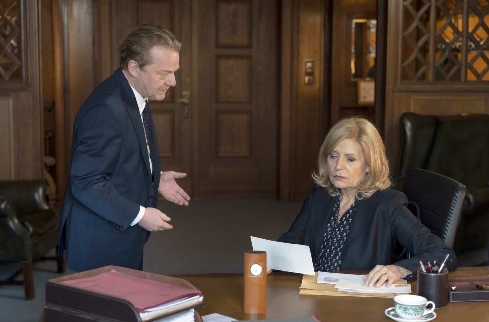 NothaltSENDER: ARD - SENDETITEL: Die Kanzlei, Folge 33 - UNTERTITEL: Nothalt - CAPTION: ARD DIE KANZLEI, III. Staffel, (11 neue Folgen), Folge 33 "Nothalt", am Dienstag (04.12.18) um 20.15 Uhr im Ersten..Isabel von Brede (Sabine Postel, r.) mahnt Yasmin Meckel (Sophie Dal, l.), sich professionell zu verhalten..© ARD/Georges Pauly - honorarfrei, Verwendung gemäss der AGB im engen inhaltlichen, redaktionellen Zusammenhang mit genannter ARD-Sendung bei Nennung: "Bild: ARD/Georges Pauly" (S2). ARD Programmdirektion/Bildredaktion, Tel. 089 5900 23879, mail: bildredaktion@daserste.deBild: © ARD/Georges Pauly