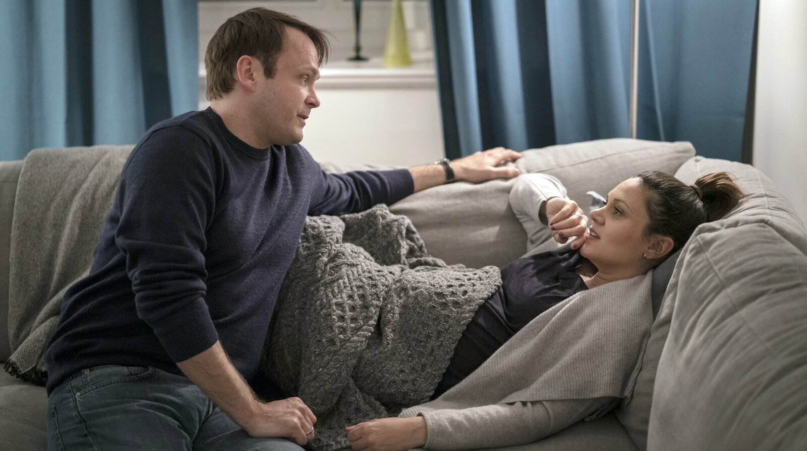 Stolz und VorurteilDogan (Alpa Gun, l.) versichert Isa (Sabine Postel, r.), dass er nichts verbrochen hat.Bild: © ARD/Georges Pauly