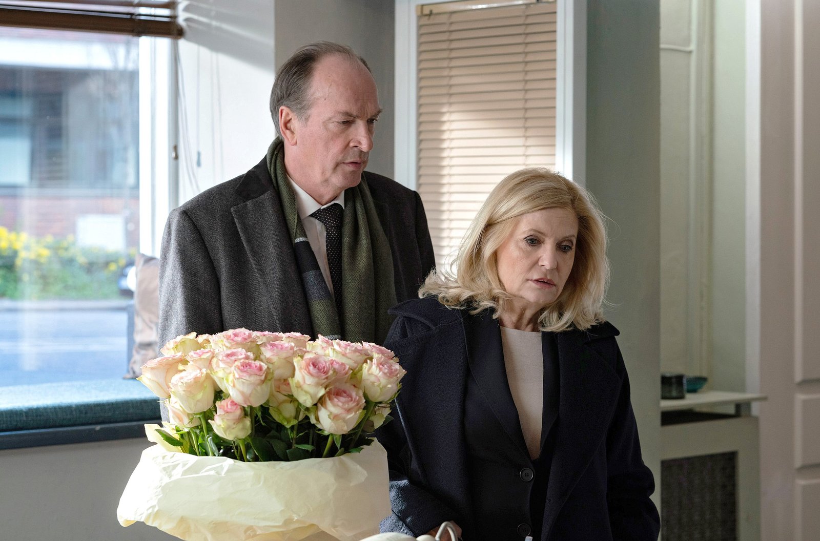 Heiße FrachtDer eifersüchtige Anwalt Markus Gellert (Herbert Knaup, l.) sieht es gar nicht gern, wenn seine Partnerin Isa von Brede (Sabine Postel, r.) Rosen von anderen Männern geschenkt bekommt.Bild: © ARD/Georges Pauly