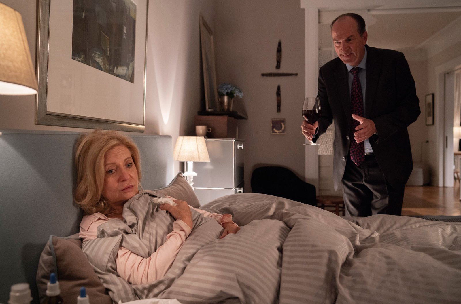 Ohne VorwarnungIsabel von Brede (Sabine Postel, l.) liegt mit Sommergrippe im Bett. Markus Gellert (Herbert Knaup, r.) versucht vergeblich, sie zu einem Glas Rotwein zu überreden.Bild: © ARD/Georges Pauly