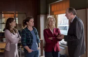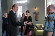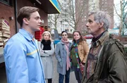 Auf der SucheIsa von Brede (Sabine Postel, 2.v.l.) konfrontiert im Beisein von Yasmin (Sophie Dal, M.) und Gudrun (Katrin Pollitt, 2.v.r.) den neuen Filialleiter Walter Mühlmann (Jan Dose, l.) mit seinem Vater Paul Mühlmann (Hans Uwe Bauer, r.), der wie Ecki auf der Strasse lebt.Bild: © ARD/Georges Pauly