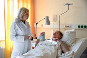 Im NetzIsa von Brede (Sabine Postel, r.) spricht mit dem schwerkranken Claus Johansen (Hans-Heinrich Hardt, l.). Wird er tatsächlich, wie seine Tochter vermutet, vergiftet?Bild: © ARD/Georges Pauly