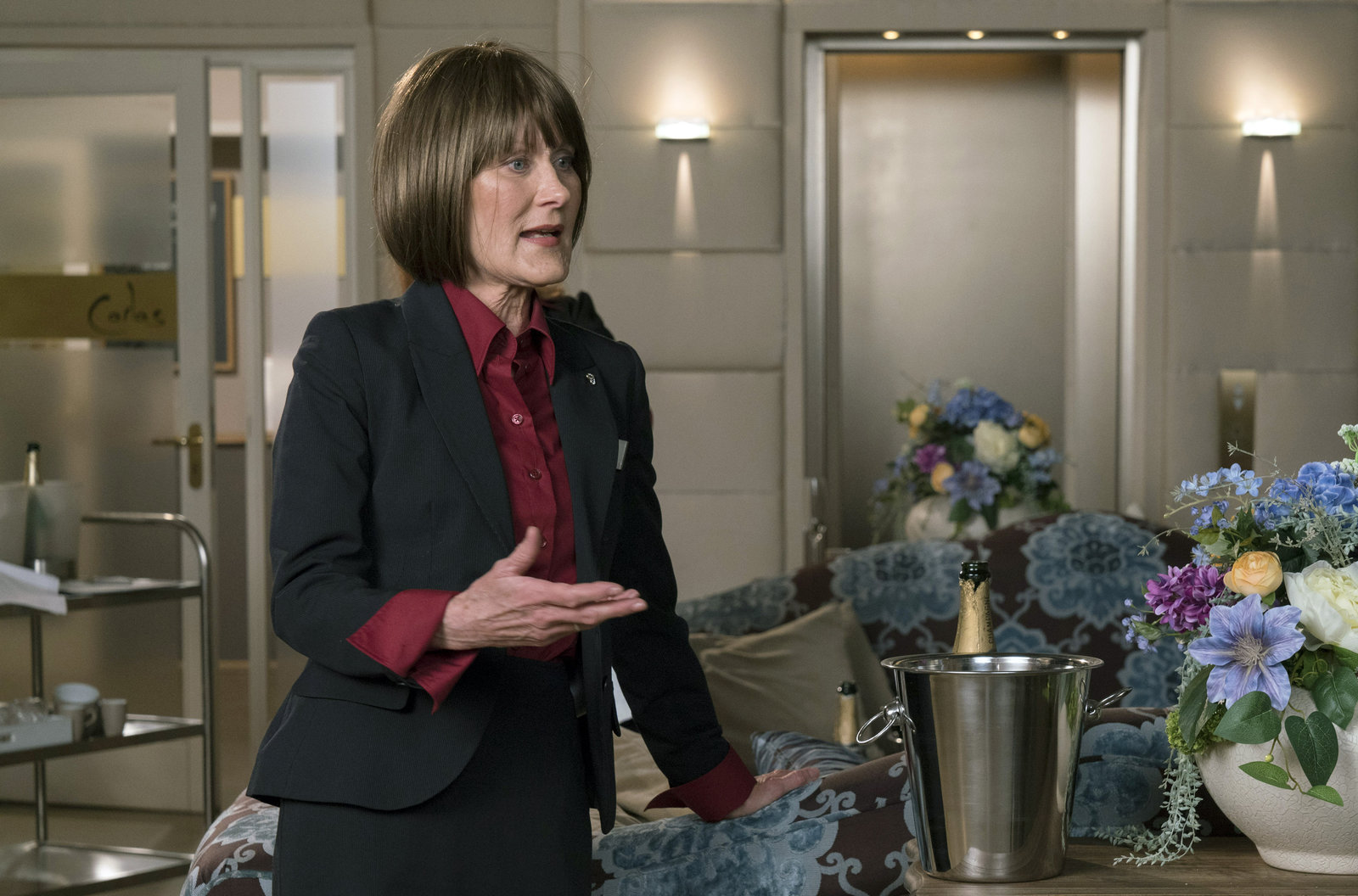 Mit harter HandSchauspielerin Betty (Hedi Kriegeskotte) hat einen Texthänger.Bild: © ARD/Georges Pauly
