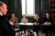 IrrungenLutz Bender (Caspar Kaeser, 2.v.l.) und Cornelia Gastner (Isabel Bongard, 3.v.l.) stehen wegen Inzest vor Gericht. Isa von Brede (Sabine Postel, 2.v.r.) und Markus Gellert (Herbert Knaup, r.) vertreten die Halbgeschwister. Wie wird Staatsanwalt Bisske (Sven Walser, l.) plädieren?Bild: © ARD/Georges Pauly