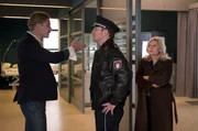 Falsche FreundeNotwehr? Jens Berghoff (Anton Rubtsov, l.) behauptet gegenüber Wohlers (Josef Heynert, M.) und Isa von Brede (Sabine Postel, r.), Elif hätte ihn und seinen Freund Helge angegriffen.Bild: © ARD/Georges Pauly